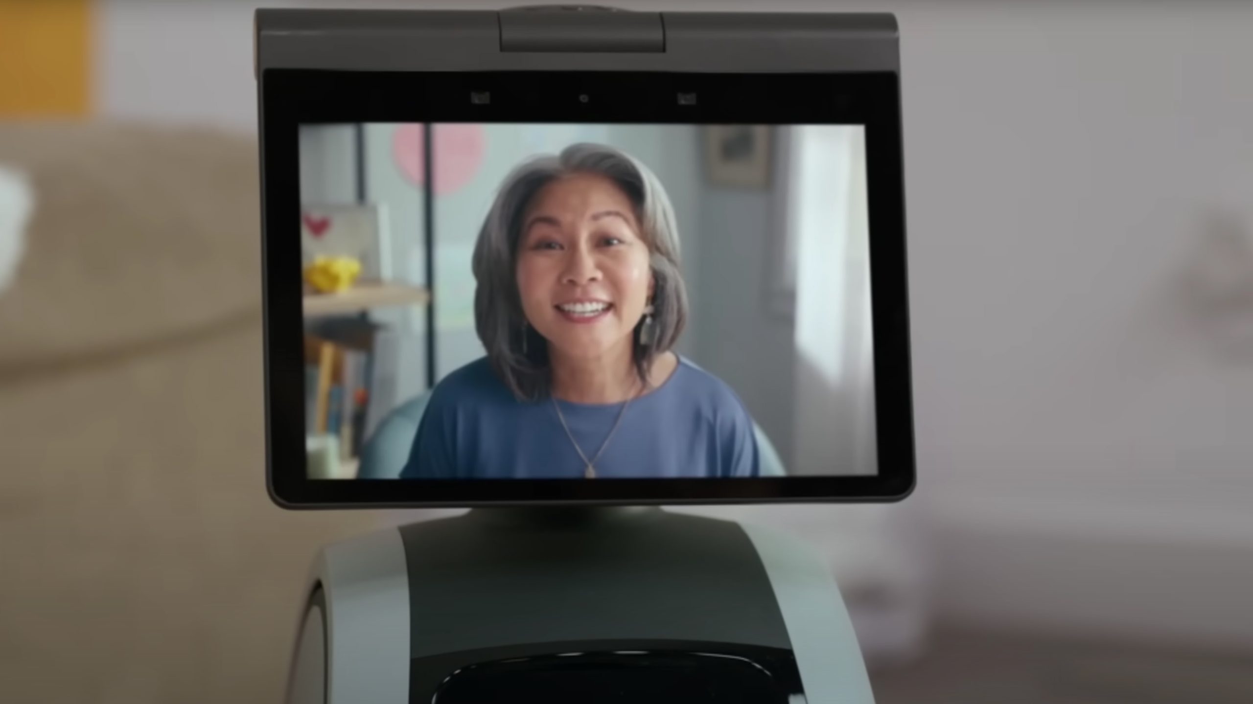 Amazon's Astro robot showing a video call on its screen