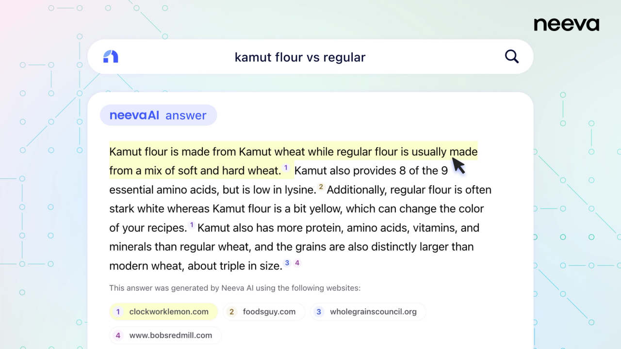 “This is why citations are front and center in Neeva's AI answers,” said Ramaswamy. “Just like no website is believable in its entirety, thoughtfulness and skepticism is essential to surviving in this modern world.”