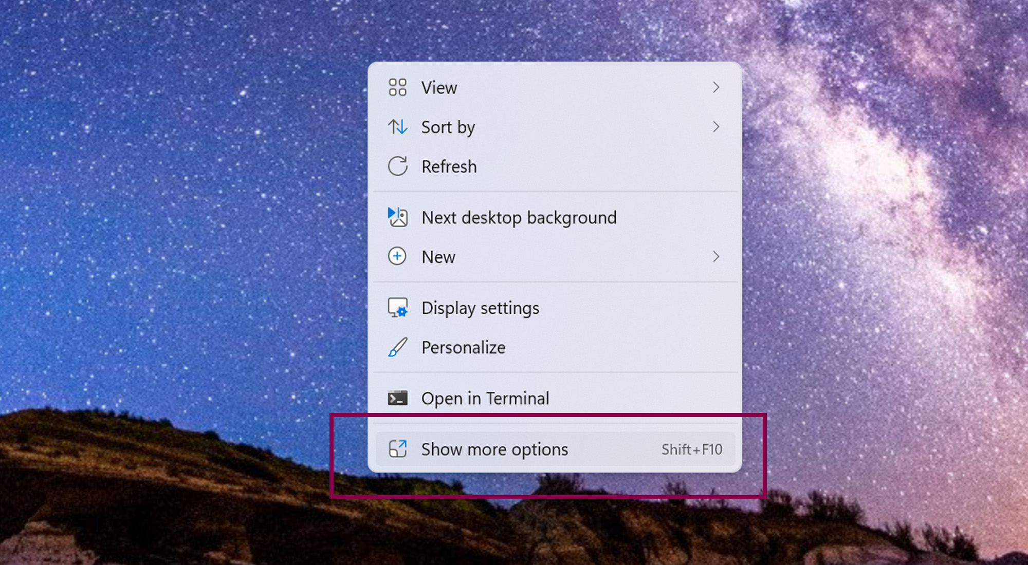 • Right-click on your desktop and select Show More Options (Windows 11 only)