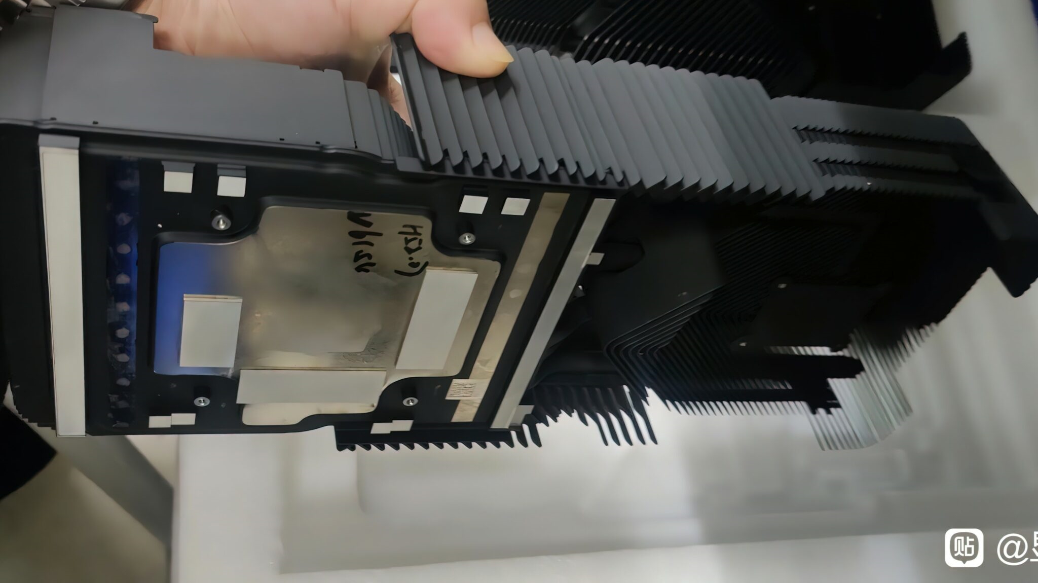 The build looks more plasticky, including the white trim lining across the card and the black trim at the top where the connector is. We can also see that the fan build is very similar to the RTX 4090, 4080, 3090, and 3080 graphics cards, based on its opposite fan design.