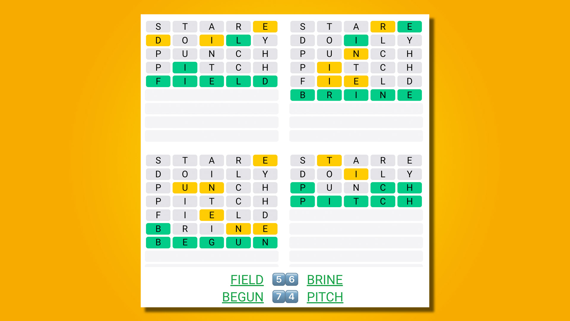 In Wordle, you can instead try several of those in succession and hope one is right, assuming you have enough guesses left. It’s risky, but will sometimes work. Plus, it’s the only option in Hard mode. But in Quordle, this will almost certainly result in a failure – you simply don’t have enough guesses.