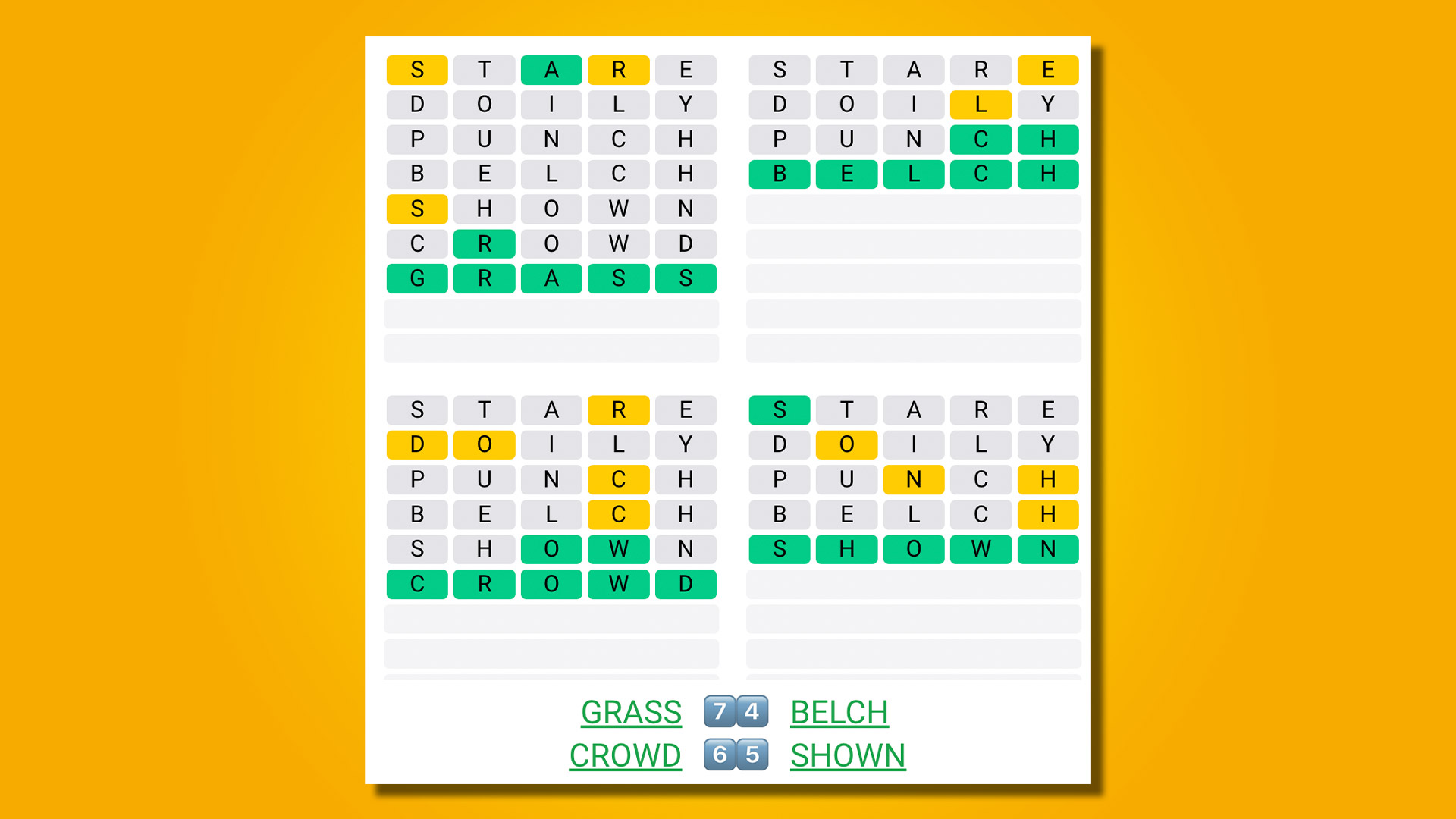 In Wordle, you can instead try several of those in succession and hope one is right, assuming you have enough guesses left. It’s risky, but will sometimes work. Plus, it’s the only option in Hard mode. But in Quordle, this will almost certainly result in a failure – you simply don’t have enough guesses.