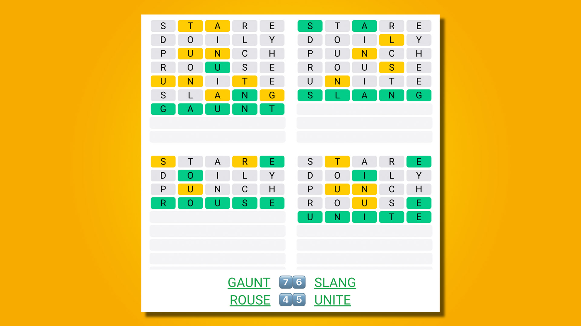 In Wordle, you can instead try several of those in succession and hope one is right, assuming you have enough guesses left. It’s risky, but will sometimes work. Plus, it’s the only option in Hard mode. But in Quordle, this will almost certainly result in a failure – you simply don’t have enough guesses.