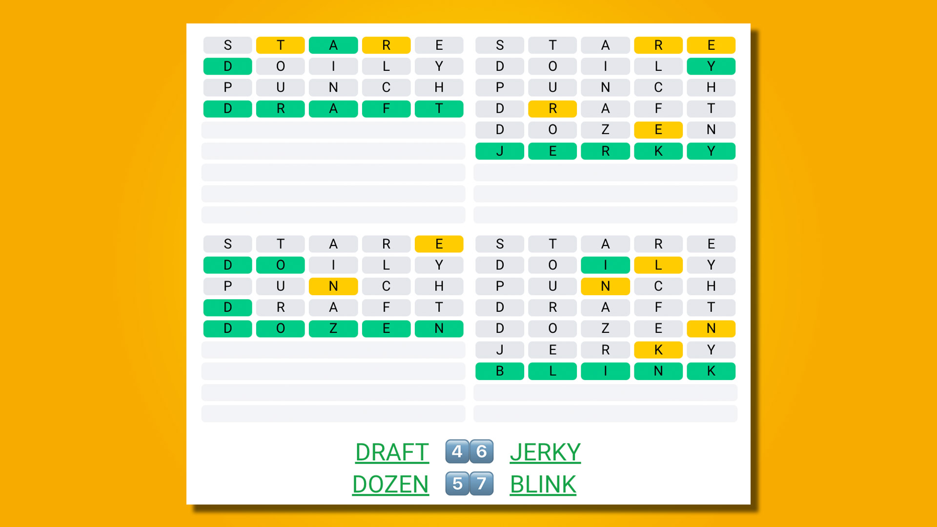 If you're already a Wordle addict then Quordle could be your next must-play game. This spin-off takes the familiar Wordle format and makes it harder by giving you four puzzles to solve simultaneously.