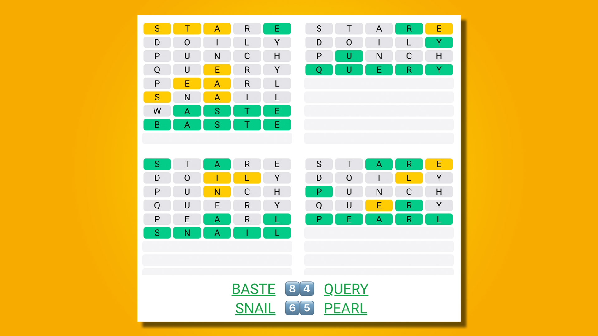 In Wordle, you can instead try several of those in succession and hope one is right, assuming you have enough guesses left. It’s risky, but will sometimes work. Plus, it’s the only option in Hard mode. But in Quordle, this will almost certainly result in a failure – you simply don’t have enough guesses.