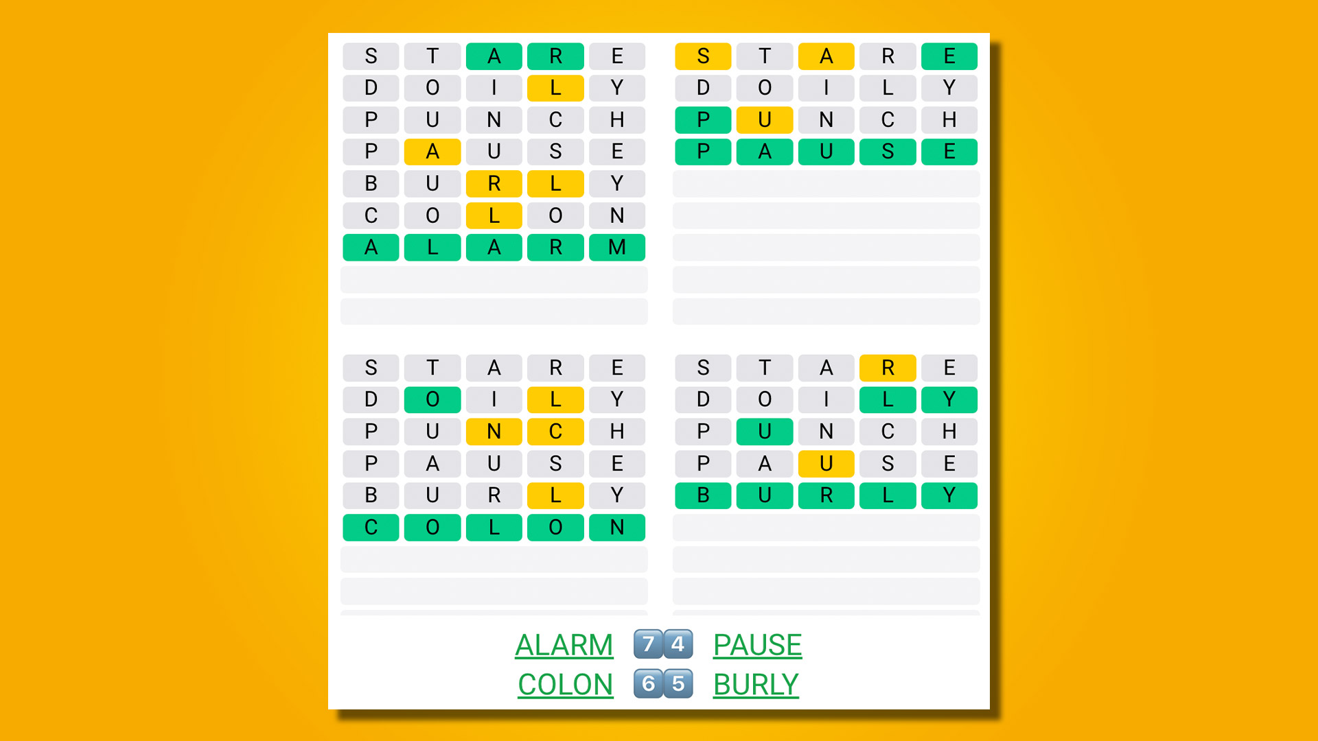 In Wordle, you can instead try several of those in succession and hope one is right, assuming you have enough guesses left. It’s risky, but will sometimes work. Plus, it’s the only option in Hard mode. But in Quordle, this will almost certainly result in a failure – you simply don’t have enough guesses.
