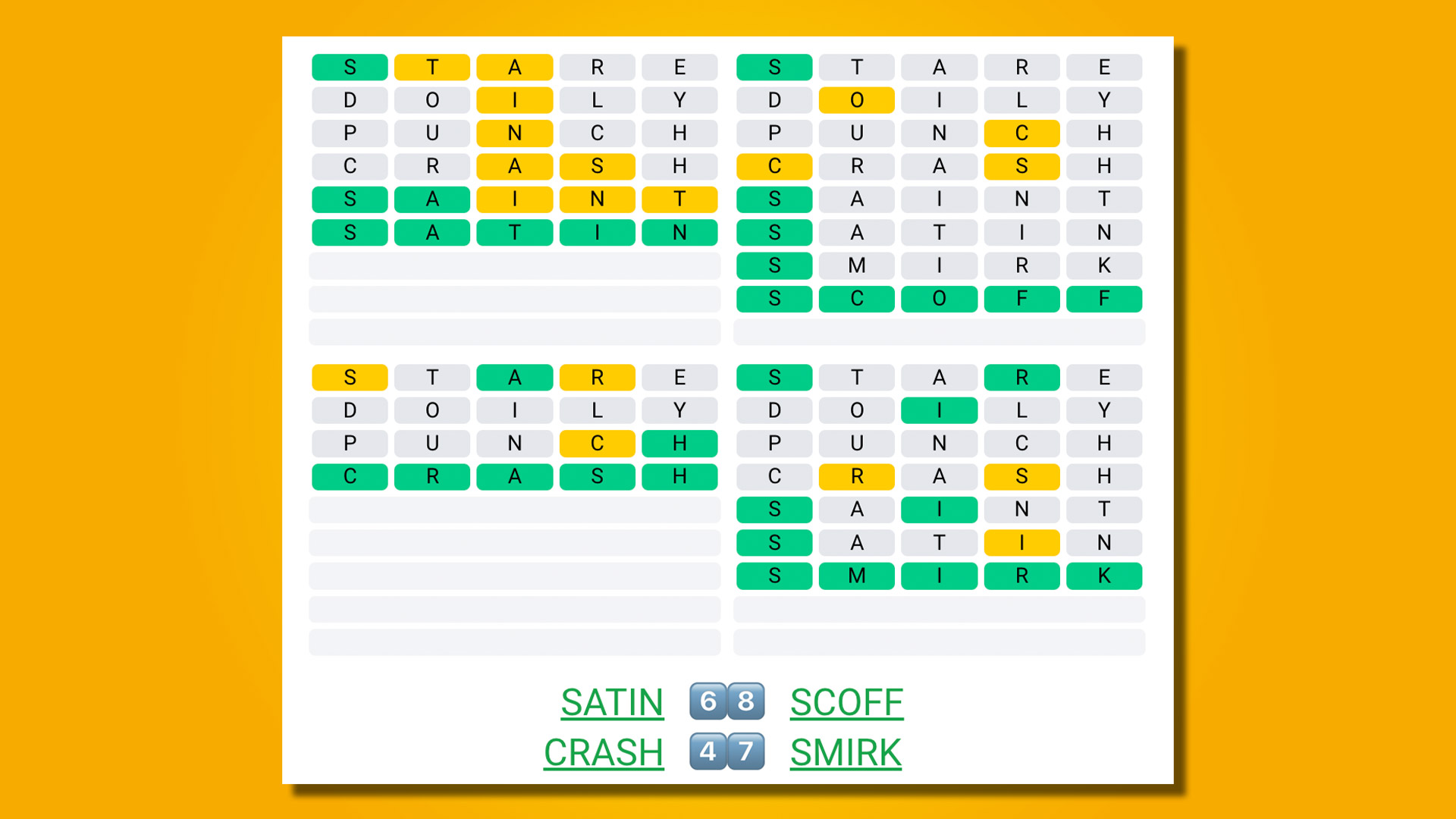 In Wordle, you can instead try several of those in succession and hope one is right, assuming you have enough guesses left. It’s risky, but will sometimes work. Plus, it’s the only option in Hard mode. But in Quordle, this will almost certainly result in a failure – you simply don’t have enough guesses.
