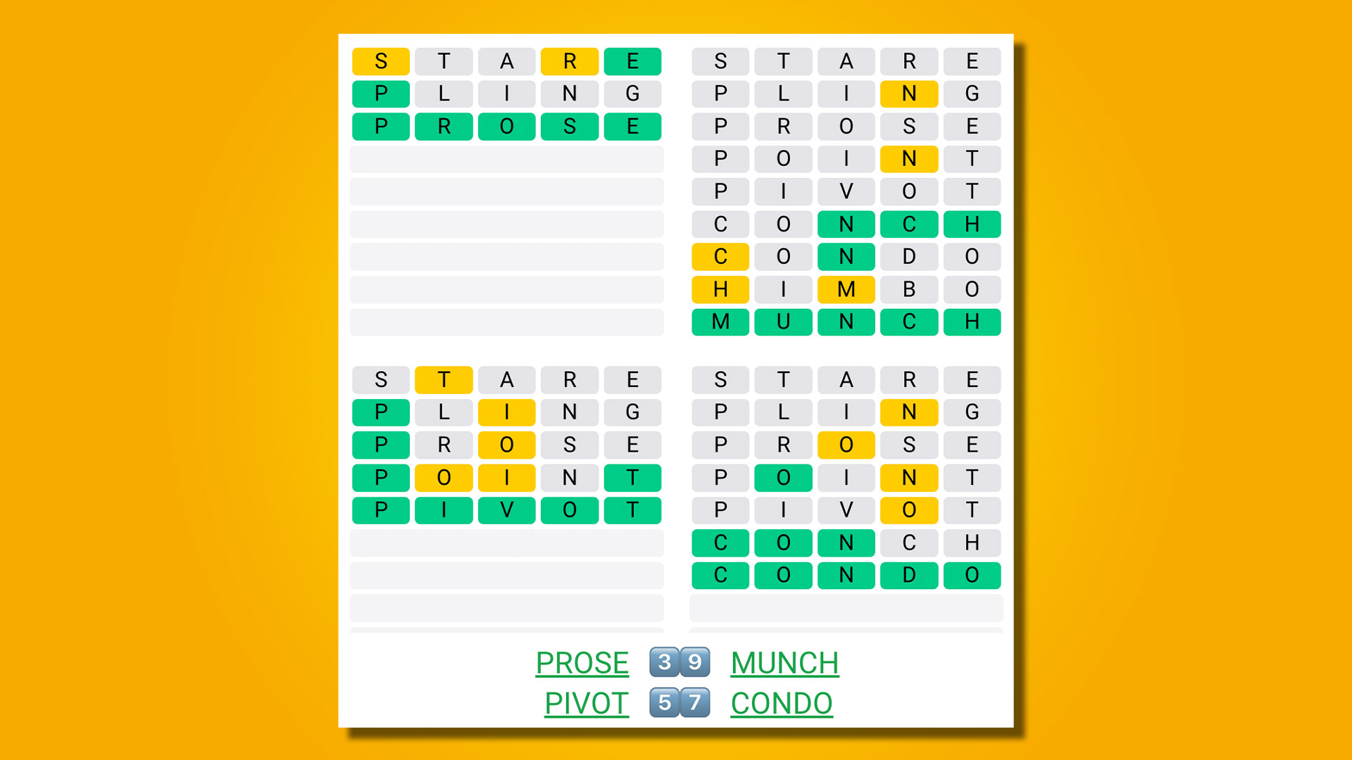 In Wordle, you can instead try several of those in succession and hope one is right, assuming you have enough guesses left. It’s risky, but will sometimes work. Plus, it’s the only option in Hard mode. But in Quordle, this will almost certainly result in a failure – you simply don’t have enough guesses.
