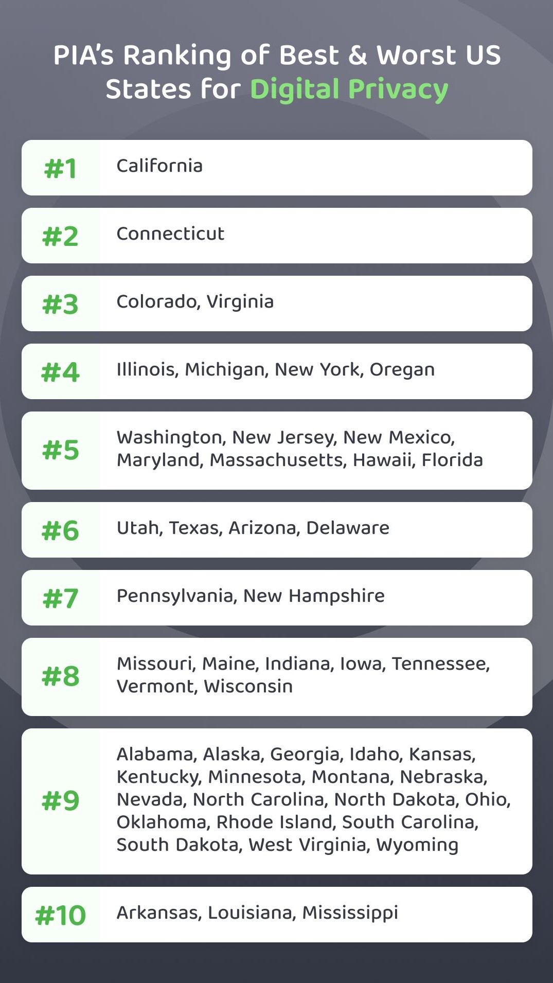 That's why Private Internet Access (PIA), one of the best VPN services out there, decided to look closely at how digital privacy legislations compare around the country. They found that there is a “stark imbalance” of protection between States. Let's dig into the results.