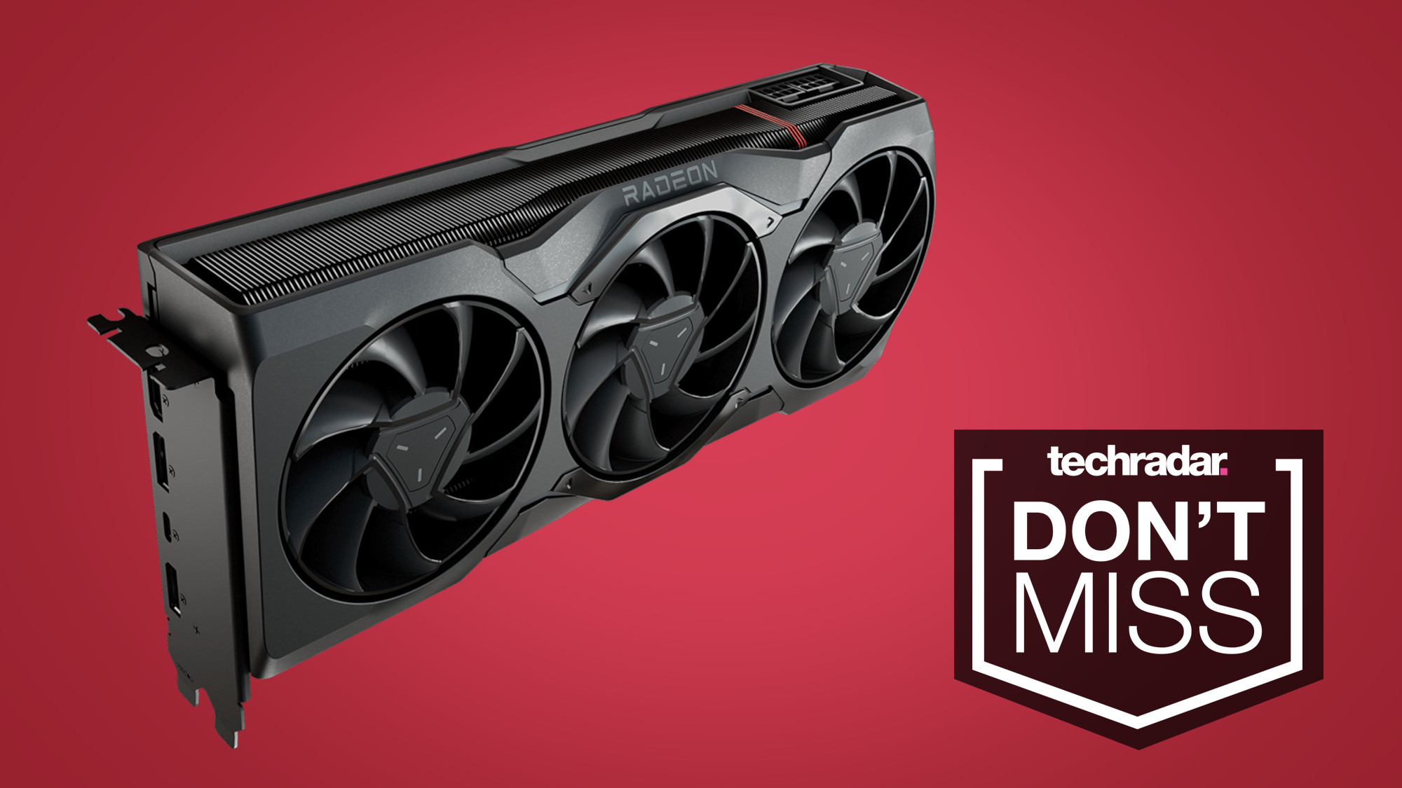 AMD Radeon RX 7900 XTX graphics card on a red background with a TechRadar badge that reads 'DON'T MISS'.