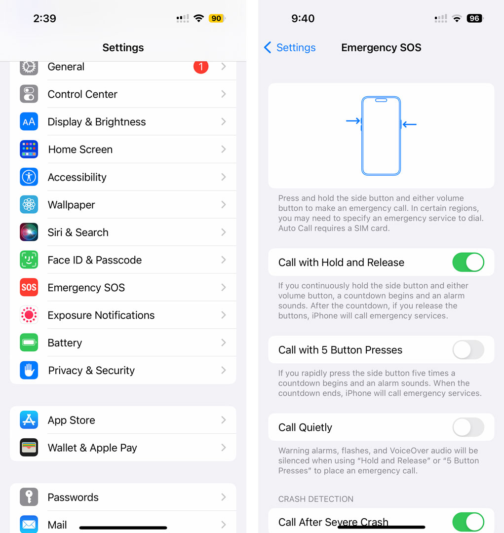 Toggle it off and the iPhone 14 will not initiate a call if you hold the power and a volume button for a long time.