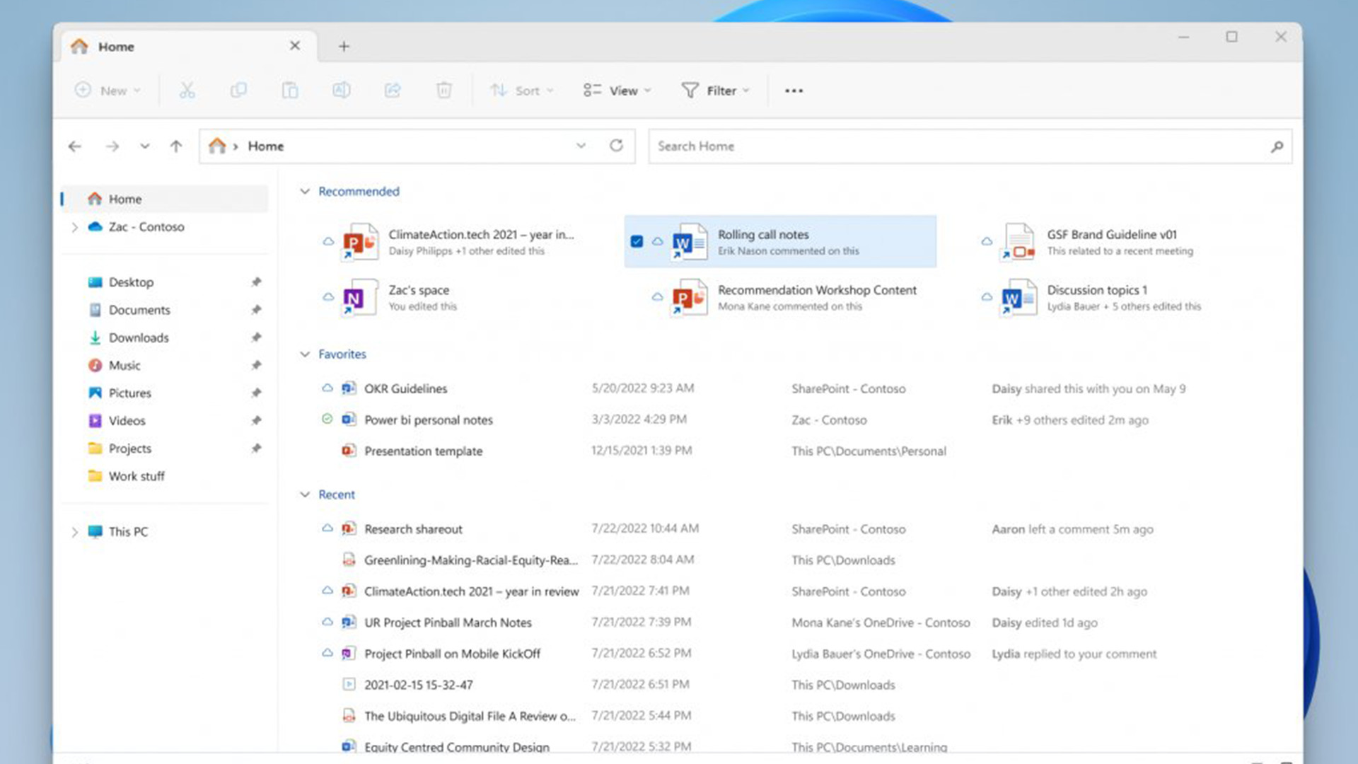 Windows 11 preview shows a File Explorer ready to recommend what you open next